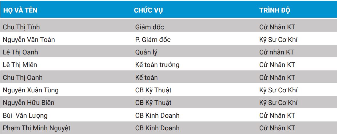 – Ban lãnh đạo gồm 02 người: 01 Giám đốc và 01 phó giám đốc
